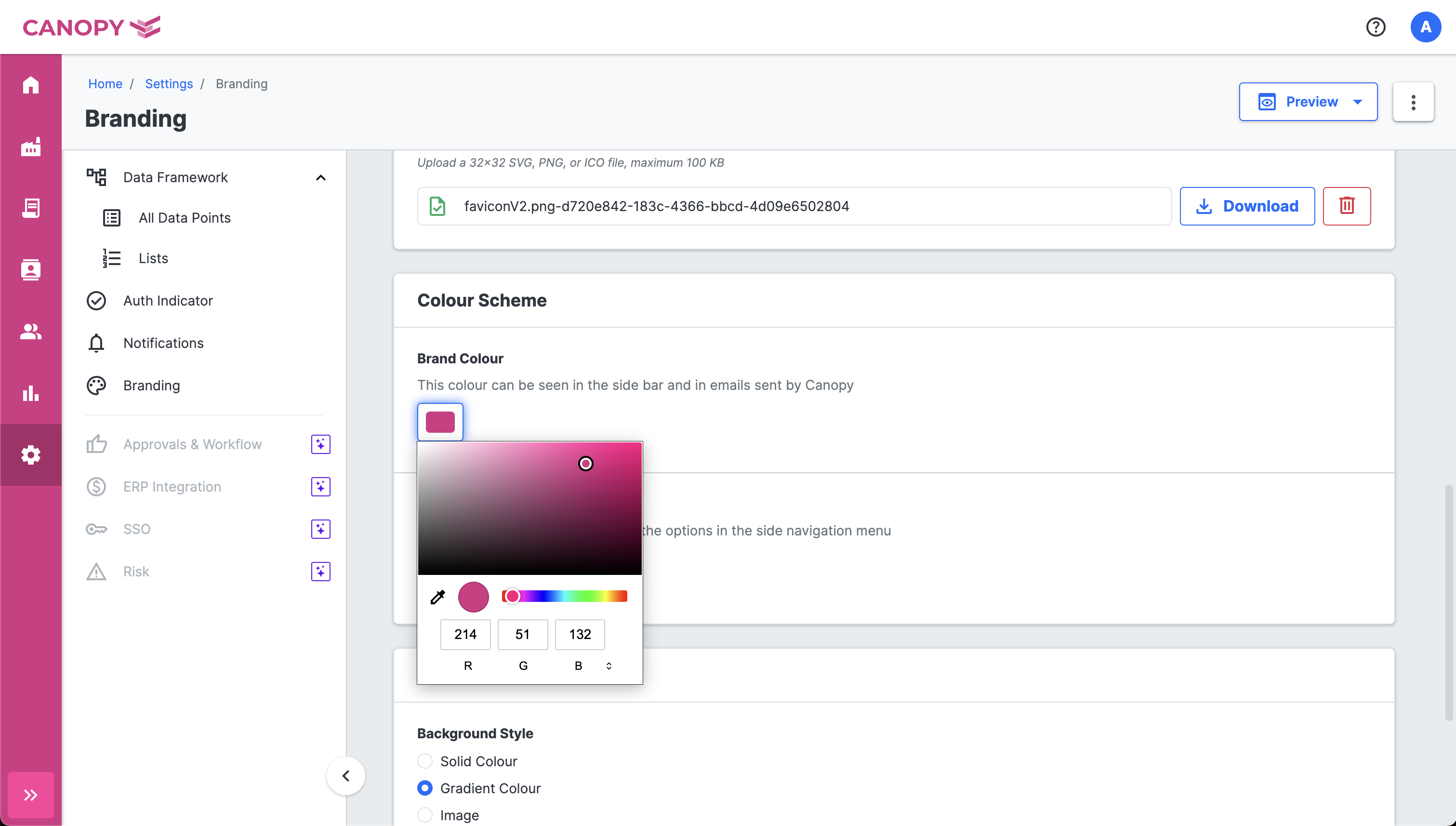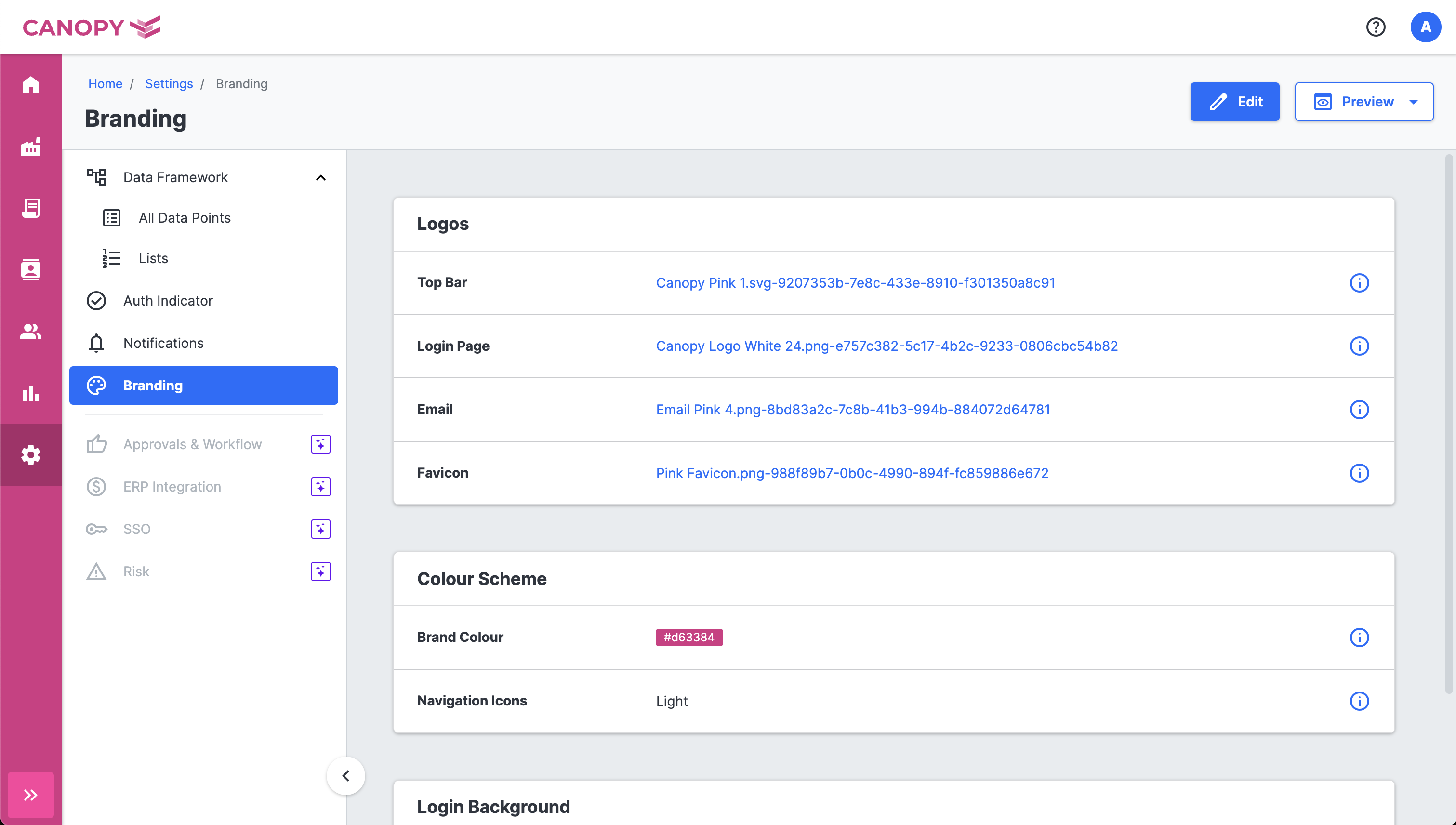 Go to Settings → Branding. Click Edit, make your changes, and Save.