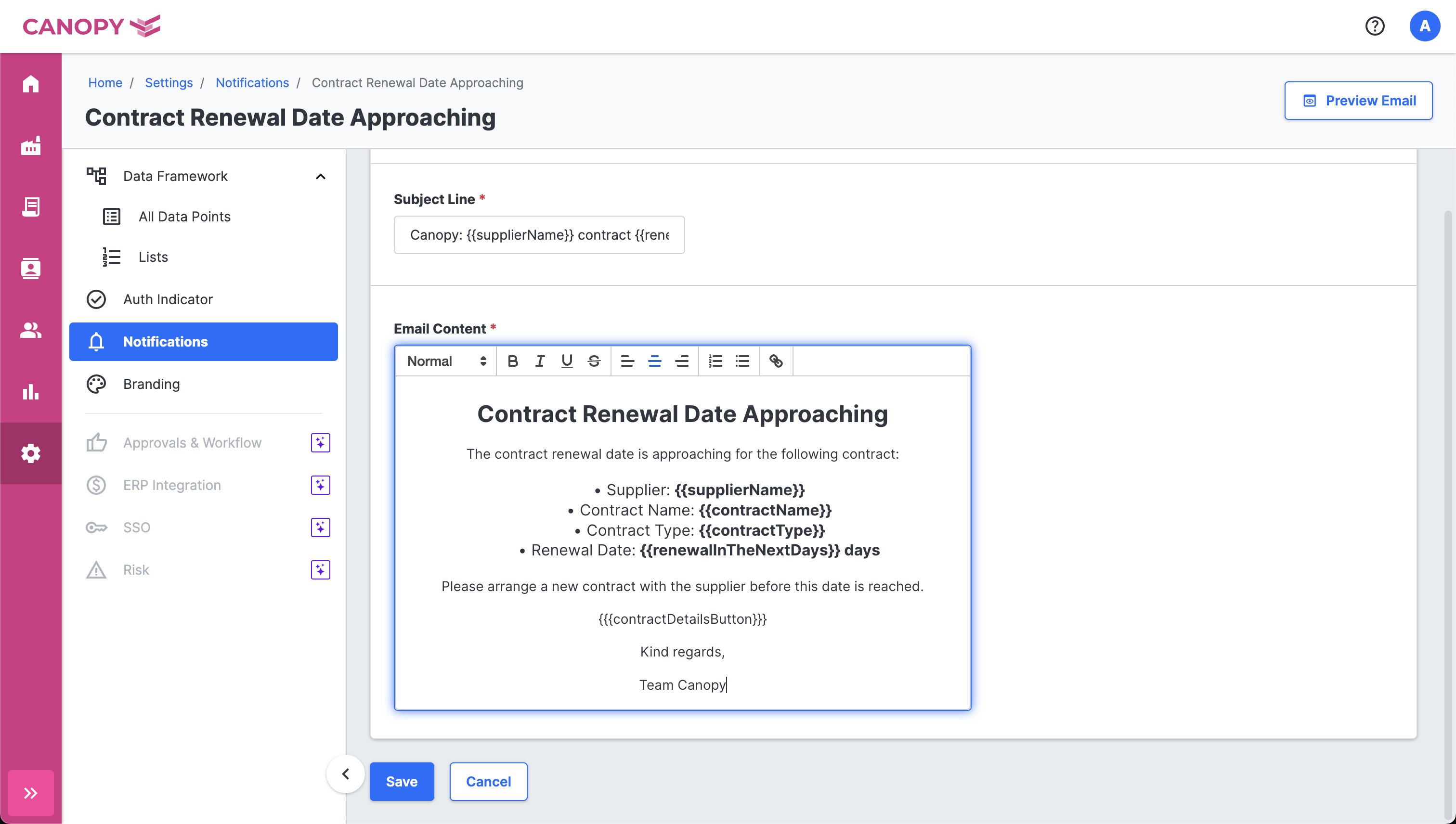 Go to Settings → Notifications to review, preview, and edit email templates.